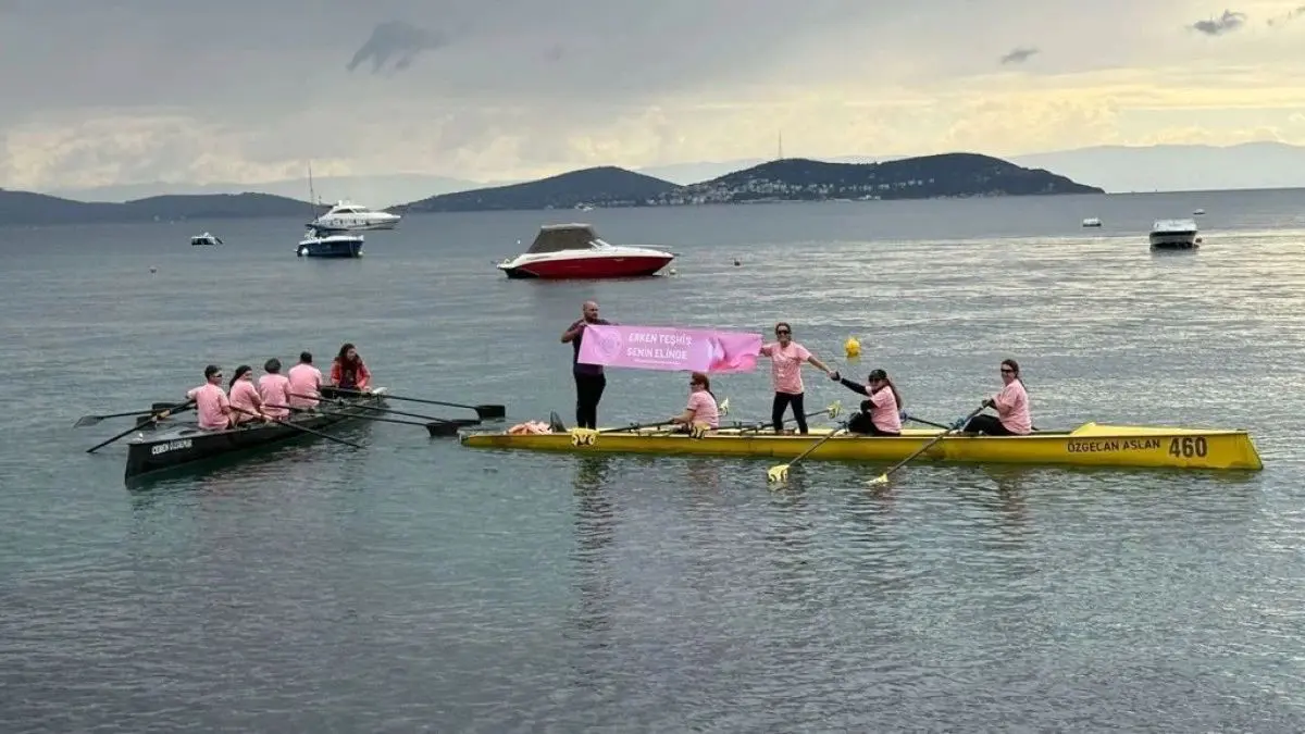 Meme kanserini yenen kadın sporcular, farkındalık için kürek çekerek erken teşhisin önemine dikkat çekti.